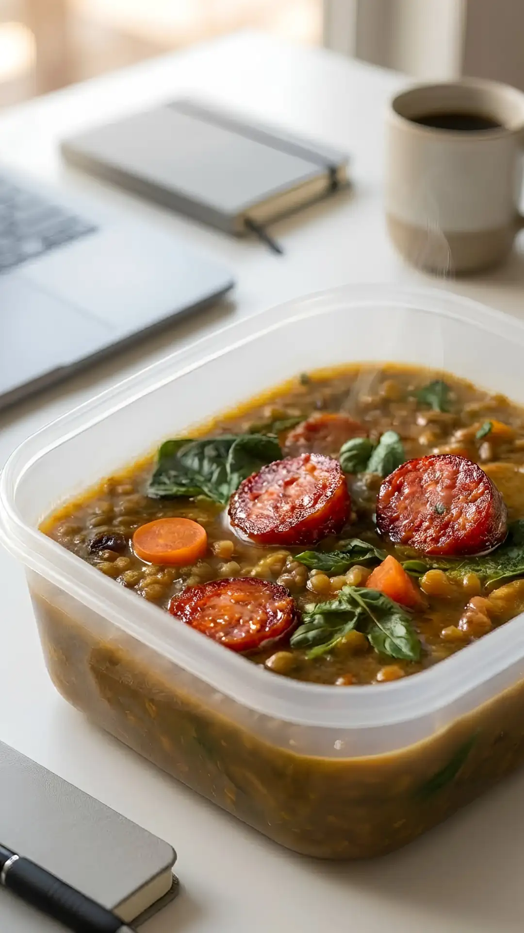 - Cazuela de lentejas con chorizo y espinacas.